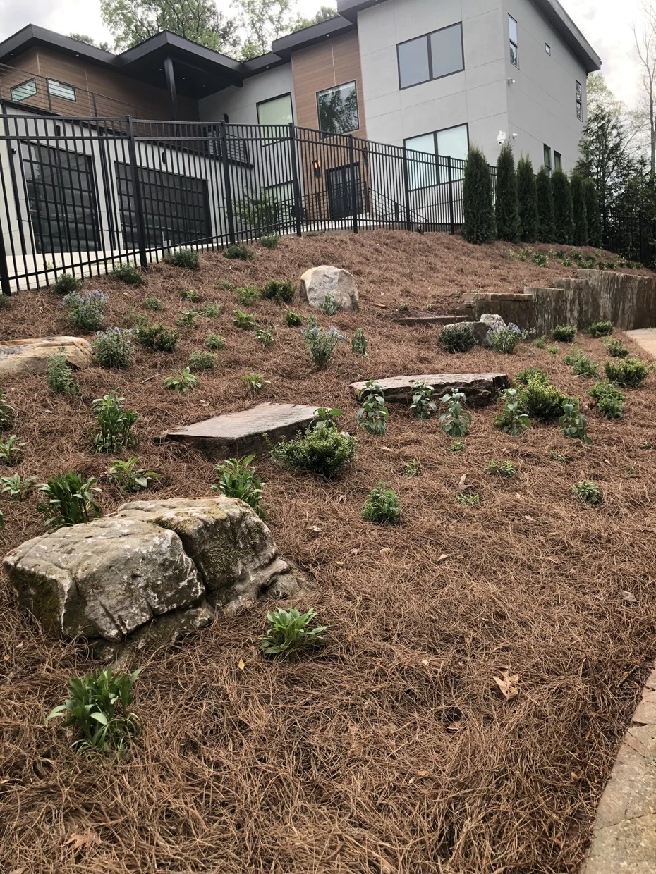 The existing hillside was challenging to maintain, unsightly, and affected the overall look and functionality of the property. The homeowners sought a low-maintenance landscaping solution that would improve drainage, enhance the property’s appearance, and provide seasonal interest throughout the year.