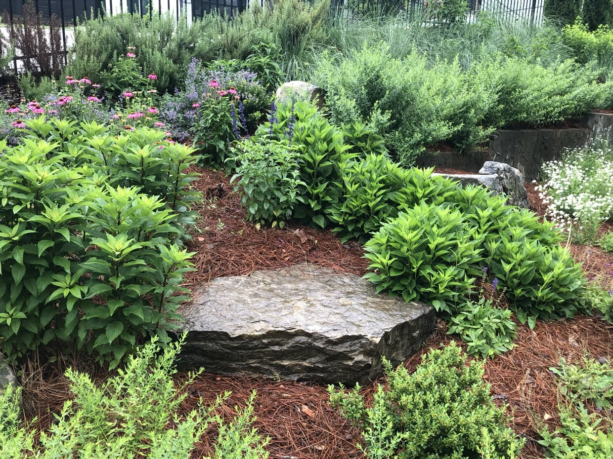 To enhance functionality, we strategically placed boulders throughout the hillside, providing natural stepping points and easier access for periodic maintenance. Many of the plants chosen retain visual interest in the winter months and provide shelter and food for wildlife during colder seasons.